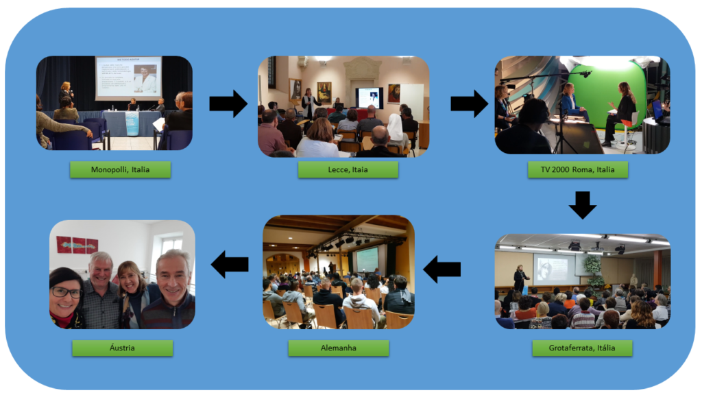 O Trabalho de divulgação do Método ADI/TIP incluiu ainda as cidades Grotaferrata, Monopolli, Lecce, Roma, na Itália, Viena, na Áustria e Munique, na Alemanha.